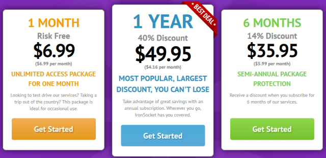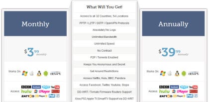 您可以选择每月 10 美元的 1 Mbps 速度上限帐户或每月 20 美元的无上限计划。您已被完全加密和隐藏。
